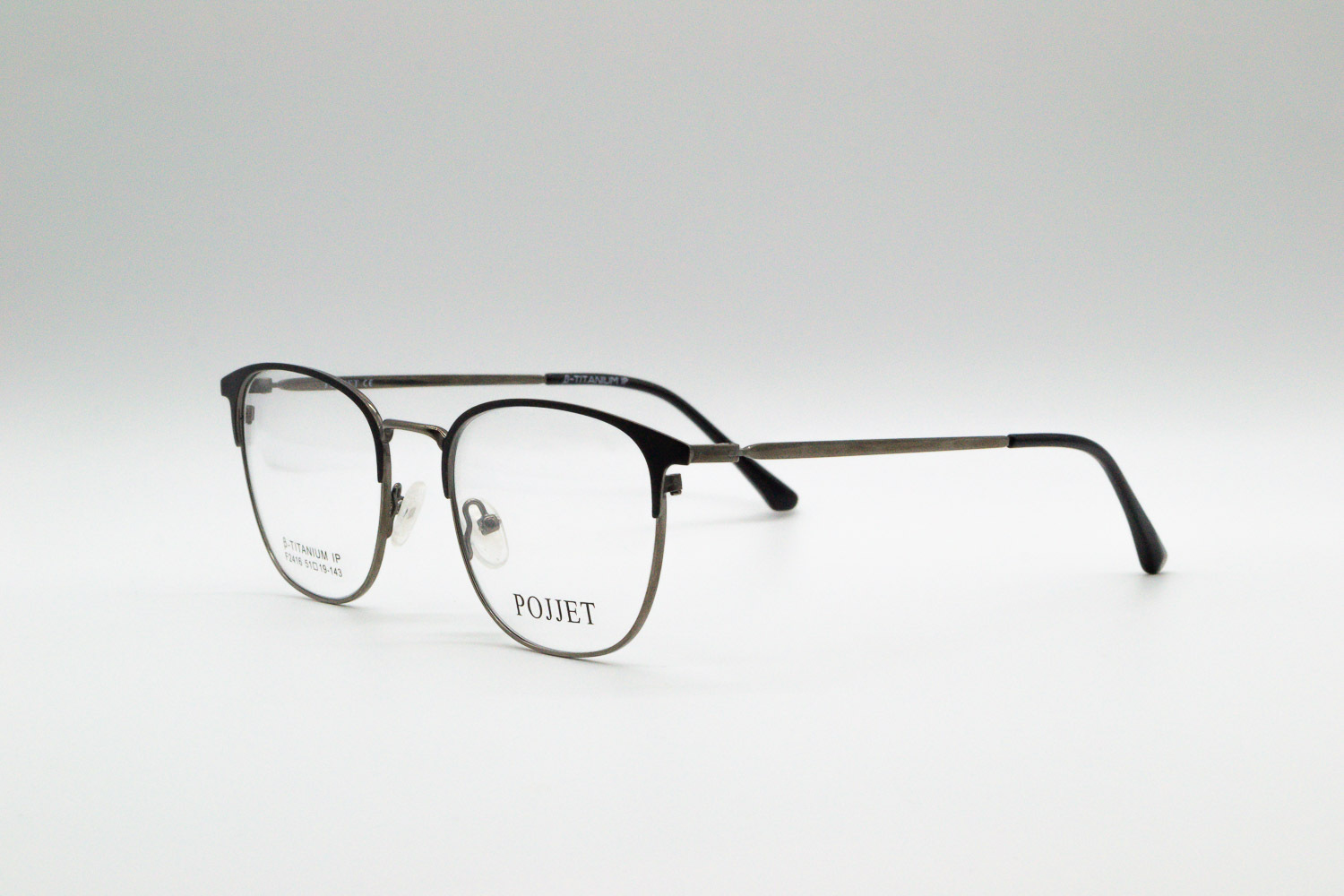 Оправа Pojjet F2416 C3 из каталога Makaroff Optics. Установим очковые линзы и проверим зрение, изготовление очков в собственной мастерской, обычно 2–5 дней, индивидуальные линзы – до 30 дней. Возможна доставка по России.
