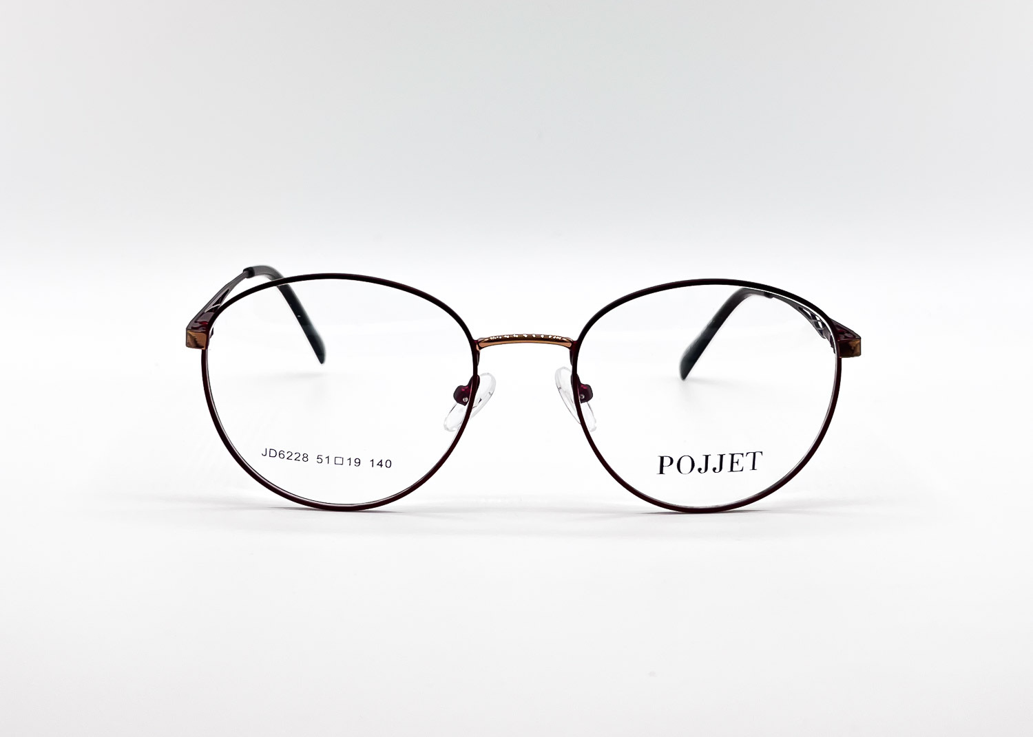 Оправа Pojjet JD6228 C2 из каталога Makaroff Optics. Установим очковые линзы и проверим зрение, изготовление очков в собственной мастерской, обычно 2–5 дней, индивидуальные линзы – до 30 дней. Возможна доставка по России.